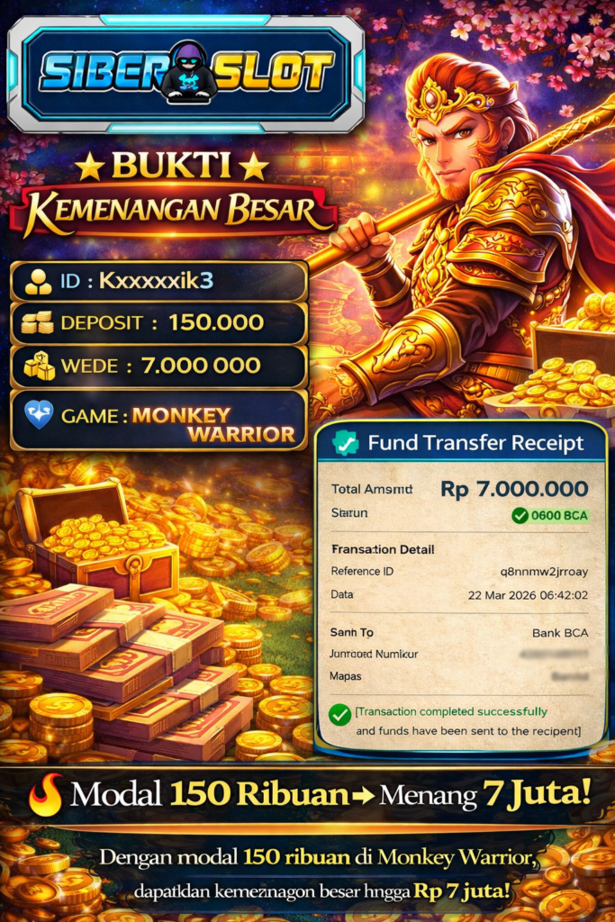 JACKPOT SLOT MONKY WARRIOR 22 MARET 2026 Jackpot Slot Gacor, Kemenangan Slot, Bukti Kemenangan, Kemenangan Pragmatig Play, Menang Slot online, Slot Gacor, Situs Aman Terpercaya, WD Berapapun Pasti DI Bayar Tuntas, Maxwin Slot Online.